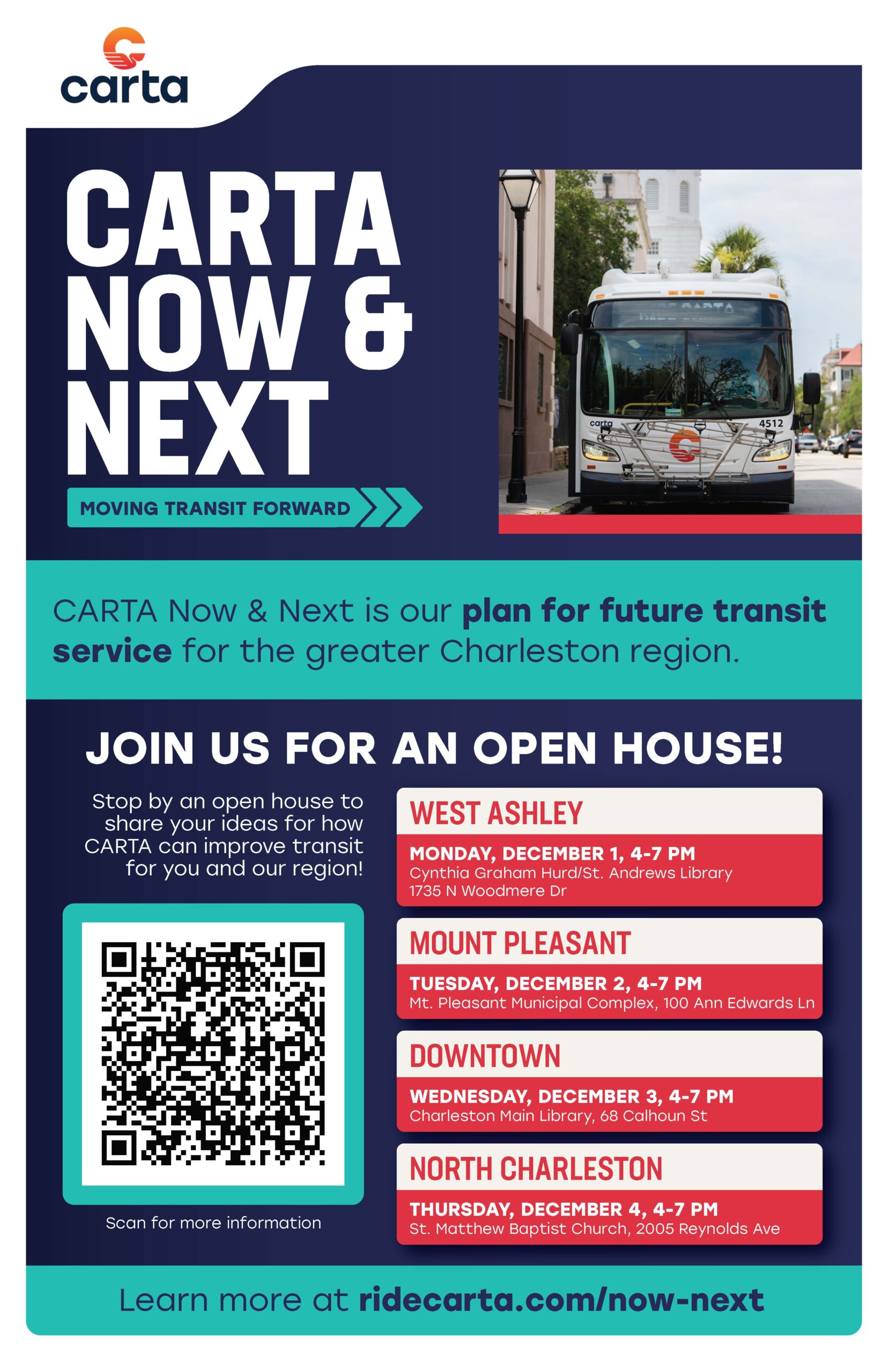 Click CARTA NOW & NEXT for project details, see info on upcoming meetings in early December and learn how you can share your ideas on how CARTA can improve service for you and our region.